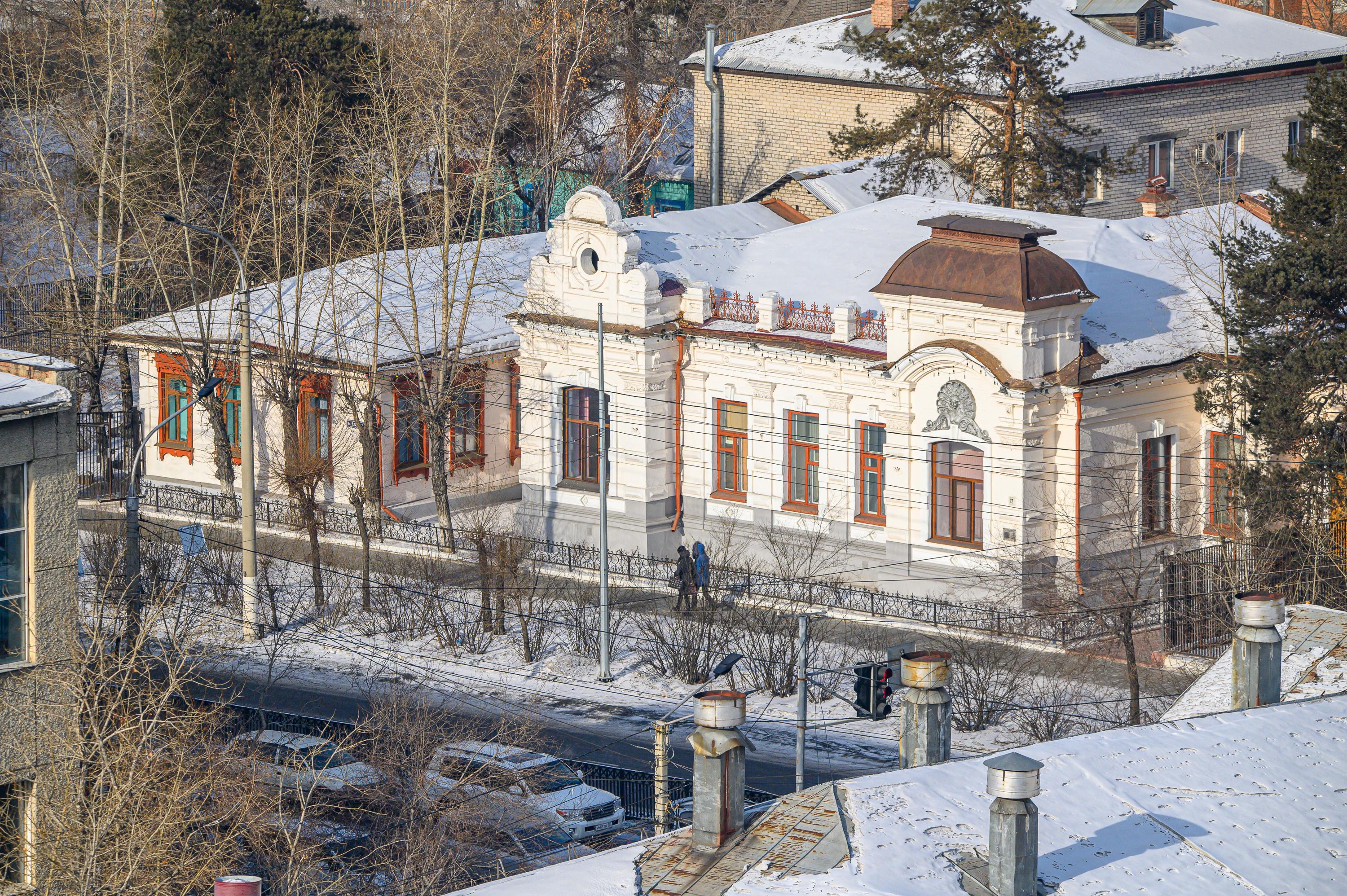 На фотографии запечатлен жилой дом И. Л. Животовского в Чите, являющийся объектом культурного наследия.
