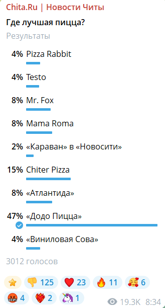 Жители Читы определили, где в городе готовят самую вкусную пиццу, по результатам масштабного опроса в Telegram-канале «Чита.Ру».