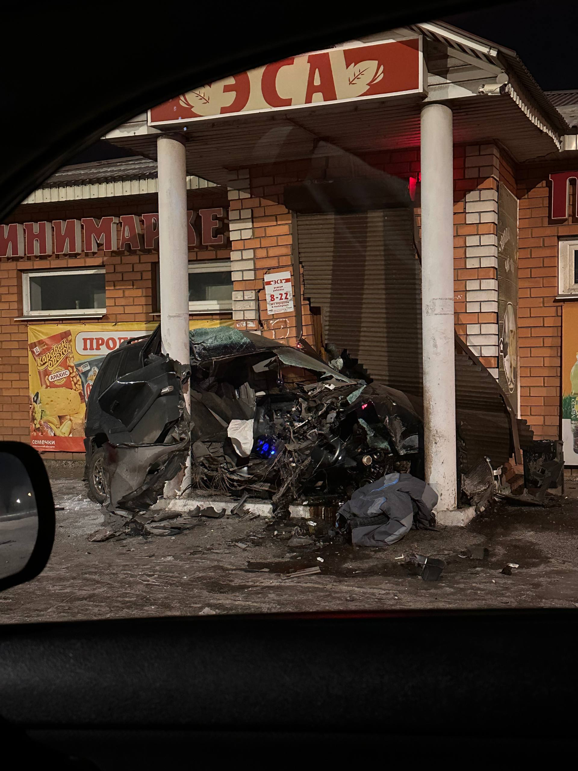 Предварительные данные указывают, что поздно вечером 4 декабря водитель потерял управление, съехал с дороги и врезался в здание магазина.